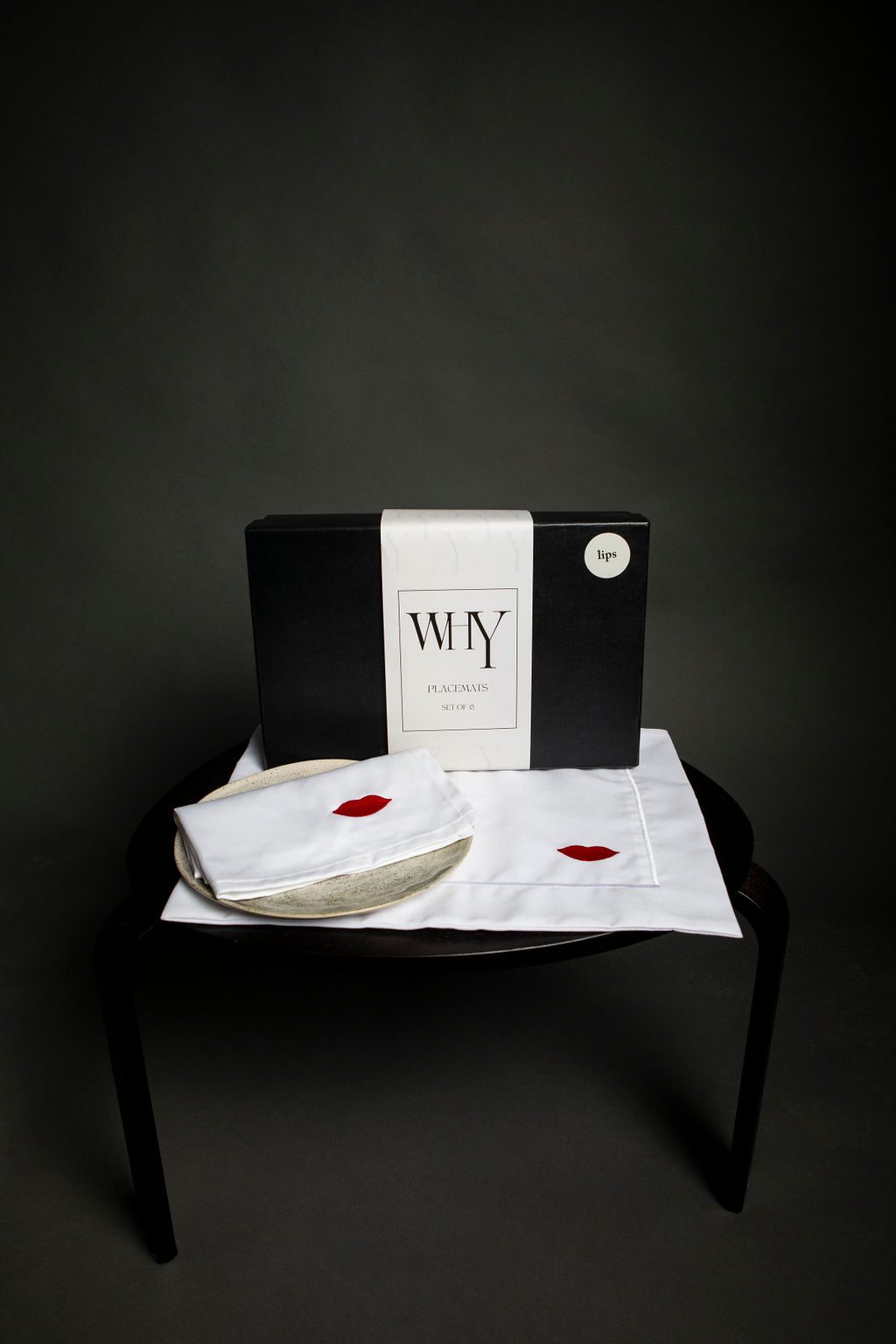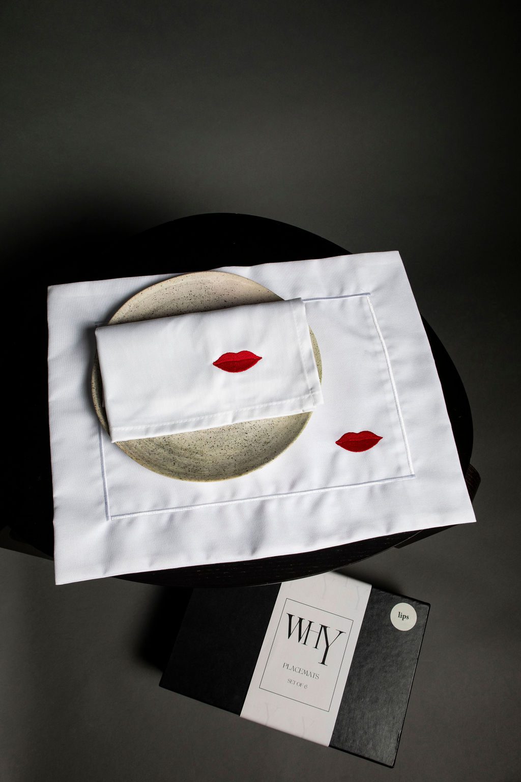 3 designs available: Bees, Lips and Blue Coral. The collection comes in Placemats, Napkins, Coasters.